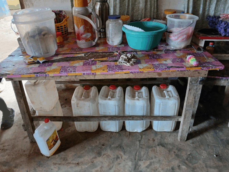 Odel Morris keeps water in containers for her business: Photo by Eric Opa Doue