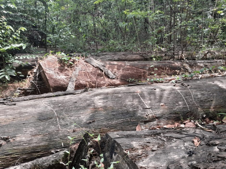 New Narratives/FPA visited one of the company’s forest landing sites in May and counted 700 round logs that appeared to be abandoned. A second visit in August found 197 logs – mostly Ekki and Dahomey trees – at another of EJ&J’s landing sites.