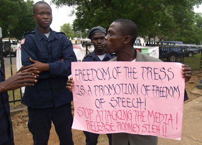 During Liberia’s 14-year civil war, the press was silenced through violence. Journalists now say they are the victims of a more subtle assault. They say a corrupt judiciary and a vindictive use of libel suits are a threat to an otherwise burgeoning free press.