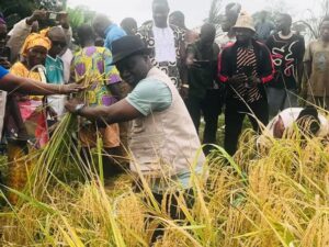 Agriculture Minister Dr. J. alexander Nueteh at a farm in Gbedin, Nimba County