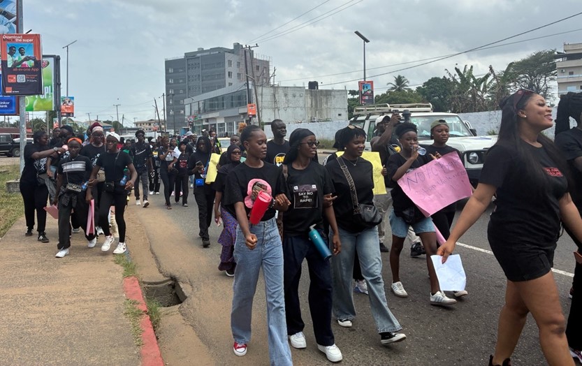 Young Liberians march in Monrovia this month demanding more action to stop rape from Boakai administration.