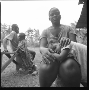 Nancy Howard sitting with her children after a long day’s work on their cane farm