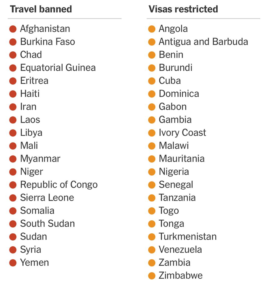 The revised policy, announced last month by the White House, took the number of countries facing visa restrictions to nearly 40 countries worldwide, most of them in Africa. Most of the major economies in West Africa are on the list including Côte d’Ivoire, Nigeria, Senegal and Mali. Citizens of other countries — including Sierra Leone, Burkina Faso, Togo, Gabon, Tanzania, Zambia, Niger, the Democratic Republic of Congo and Somalia — face broad travel bans. Liberia and Ghana are two of just a handful of countries in the region that are not facing a ban.